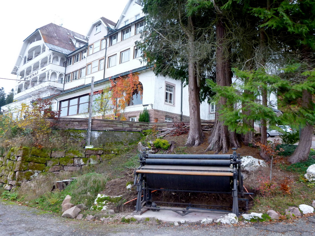 Der Verein für Kulturdenkmale Freudenstadt (Schwarzwald) hat diese Zylinder-Dampfmangel des ehem. Grandhotel Waldlust (1899 – 2005) in Freudenstadt restauriert und als technisches Schaustück ausgestellt.
