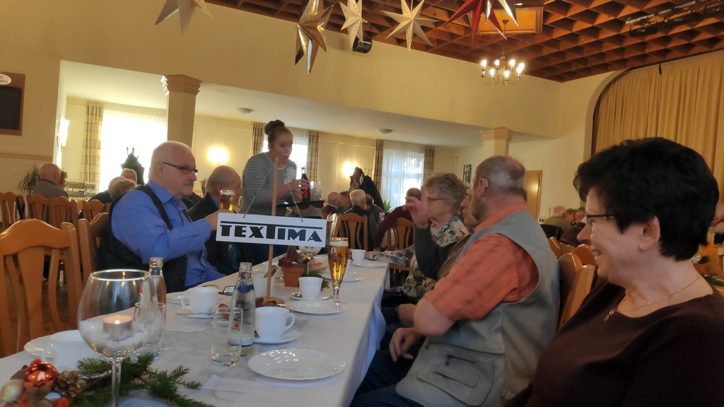 Auch in diesem Jahr fand das Treffen der ehemaligen Mitarbeiter der "Textima Forst" im Gasthaus Sacro statt.Werner Hampel eröffnete die Veranstaltung, die einst die Weihnachtsfeier der Textima-Senioren war und später zur Zusammenkunft aller Ehemaligen wurde, mit einigen Ausführungen zum Bemühen des ZDF, nach 30 Jahren endlich über die damalige Situation im Osten zu berichten.